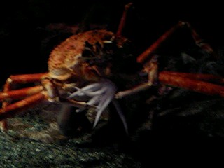 イカを食う高足ガニ、初めて食べてるとこみた。いつもジィッっと動かないのにすごい手を早く動かして食べてました。