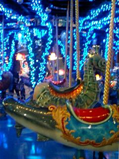 入るとすぐ室内にメリーゴーランドがある。電光が水色ですごく綺麗。子供たちは喜びそうですね。