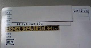 明日は午前中仕事を休んで免許更新に行ってきます。 3月が誕生日だったけど、3月中はいろいろ忙しくて行けず、誕生日の前後1ヶ月が更新期間だから、藤くんの誕生日に更新してきますよ(たぶん更新日が免許証に記載されると思う)。無事故、無違反、“優良”です♪ 免許センターではなく、警察署に行ってきま〜す。わくわく。。