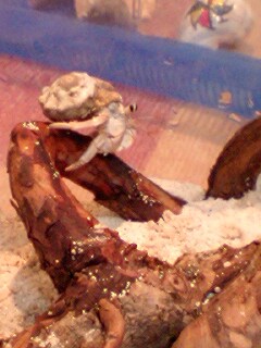 ガメ子は近くに行くとすごいクビを伸ばして“遊んで!遊んで!!”状態で私には慣れているのだが、ヤドカリ達はダメだねぇ、、、近寄ると貝の中に入っちゃうし、静かにじぃぃっとしていないと動いてくれない。まぁ、あの自分勝手なのがいいんだけどね。 昨日、仕事終わってからペットショップに行ったんだけど(カメのエサとか買いに)、そしたらすごく大きなヤドカリが500円で売ってた。。私が飼っているヤドカリは100円でした(大安売りだったみたい)。。大きいヤドカリ、ほしい、、、、手のひらぐらいの大きさだった。あれって何食べるの?どのぐらい食べるの?うんちはどのぐらいの大きさなの?触角でかい〜〜、、などもうすごい買いたい衝動にかられました、が、やめました。。今いるヤドカリ達と同じところに入れたら絶対食われるぞ(一緒にするのがまちがっている・笑)。
