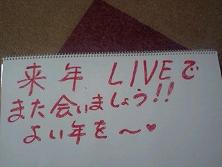 なんかドッキドキ! 服はコートやジャケット着ないでロングセーターだけだと寒いかな・・、大判ストール持ってけば大丈夫かな・・? これから何かメッセージを書こうと思っています。今日眠れないんじゃないか・・・。