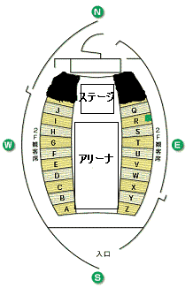 私たちの場所はここ↓ かなり良い席でした(Rブロック18列目・緑色のところ) 一万人のキャパでした。