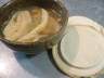 ふやけ物好きの私は一夜置いた物を今朝がた 暖め返していただいてみました。これが何と、更に 至極の美味!思いのほか溶けずに形が残り、箸でも つまめるほどでしたし、何よりつゆを吸って膨れた せんべいのそのジューシーなお味と、なめらかな舌 ざわりは、他に類を見ない心地よさでした。