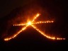 只今午後6時、窯の温度はおよそ1,100℃ そろそろ釉が溶けて、素地も焼き締まる 温度です。目一杯寄って撮りましたが、 中の器がうっすらと見えると思います。 窯小屋の温度は42℃です。温度の調節を するのに窯小屋にいる時間はほんの数分 ですが、あっというまにだだーっと汗が出て、着ているものは びっしょりになってしまいます。幸い今日は難しい調整が無い 焼き方なのでちーっとは楽ですが、焦熱はこたえます。 何しろ外のほうが涼しく感じるくらいですからなぁ。