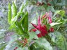焦熱にバテる人間をよそに、畑の里芋 と唐辛子はいかにも元気で、鷹の爪 は日に日に赤く実を熟していきます。 巷ではクーラーにあたりすぎて体調 を崩す方が多いようですが、冷房に ばかり頼らず、生活の知恵で乗り切 るようにしたいものです。辛いものを食べるのも一つでしょう。 頑張ろう日本の夏、ファイヤー!!