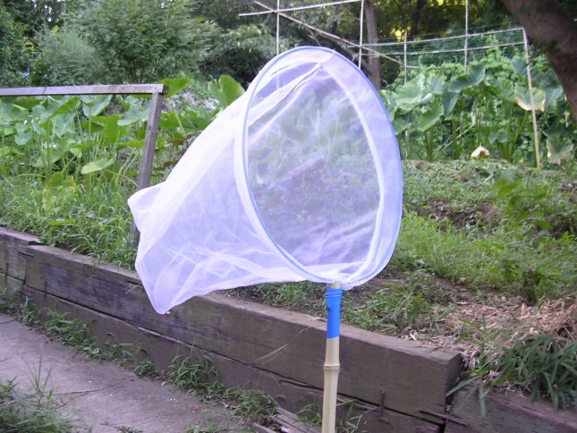 ちょうど風が吹いていい感じ にふくらんでくれた虫捕り網