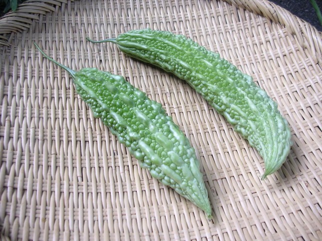 ニガウリをふたつ収穫しました。 種を播いてから三月、のんびり です。瓜の類は生りはじめると 忙しいですから、これからボリ ボリ採れることでしょう。暑い ときには暑い所の野菜を肴に、 暑い所のお酒をいただきましょう。ずばり!泡盛ですかな。