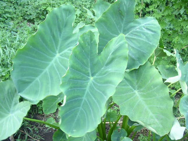 里芋が昨年に引き続き、たいそう 大きくなっています。葉はゆうに 大人の顔を隠すほどになり、丈も 四尺ほどになっています。暑さで 喜ぶ植物もあるものかと、里芋と ゴーヤーを嬉しく眺めています。 収穫はまだまだ先ですが、豊作の予感がします。 寒くなったらこの芋を炊いて、お燗酒をきゅーっと 呑りましょう。