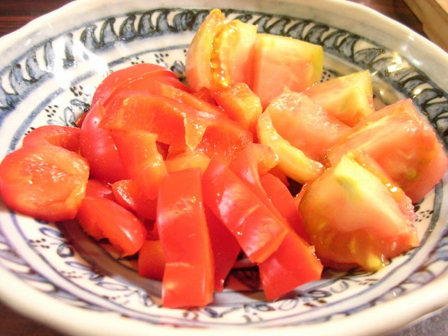 画像はパプリカとトマトの糠漬け。 どちらも色が綺麗で美味しくて申し 分ありません。茄子や瓜類は美味し いですけれど、ミョウバンを上手に 使わないと色を保つのに一苦労です。 赤い色素(カロチン)は乳酸発酵も なんのその綺麗な色が残ります。カロチンはビタミンAに 体内で変わるプロビタミンですし、トマトにはリコピンも 含まれていますので栄養価は抜群!乳酸の旨味が加わる ことで至福の美食となります。