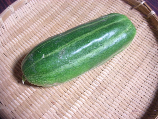 調べてみたらば、大阪の伝統野菜らしく、大阪城の 玉造門(黒門)近辺で栽培されていたことからこの 名が付いたそうで、越瓜という字を当てるのは中国 越の国から伝来したからだといわれています。漢字 で書くと 『玉造黒門越瓜』! 何とも武ばった名前 ですなあ。千葉あたりでも栽培されているところを みると、すでにポピュラーな栽培品種でもあるので しょうか?アルコール性肝障害に効能があるそうで 大いに食すべき瓜だと、多数のサイトで評価の高い 野菜です。