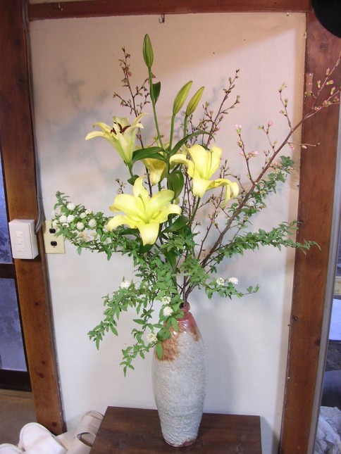 私の花器に、ニッシンさんが 春の花を活けて下さいました。