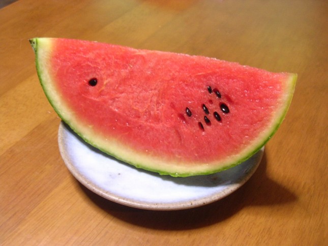 スイカもたくさん並んでいましたので、小玉のを一つ 買ってきました。食後に切っていただきましょう。