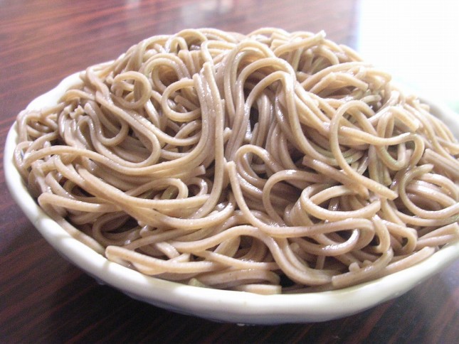お昼にソバでも食うべぇと、どこかで貰った乾麺を一袋 ひっぱり出してうでました。原料表示には小麦粉の方が 先に書いてあるような駄ソバですが、先月の市場で残っ た本格そばつゆがありましたので、山芋をすり、とろろ ソバで美味しくいただきました