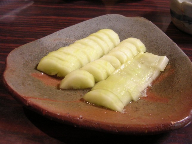 中の種を取って食べるとそれはそれ は美味な物です。畑をやっていて 胡瓜を作ったことがある人なら、少し 見ないうちにどでかくなってしまった 経験がおありでしょう。そんな胡瓜 は捨てずに糠床に漬けましょう。