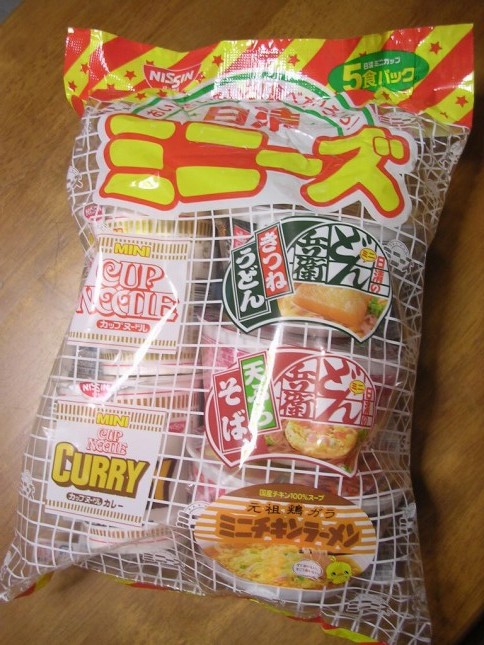 頻度が多くなると、献血後の 記念品も頂く回数が多くなるの は必定ですが、最近は決まって 画像の 『日清ミニーズ』 を貰っ てきます。他にはお米やレトルト カレー、タオルやTシャツといった ものがありますが、麺数寄者は 迷わず 『日清をお願いします』 と、毅然とした態度を示してきます。