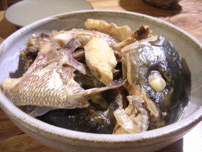 魚の会の残り物を炊いて、今日 の晩酌の肴です。鯛とカンパチ を一緒に炊くフュージョンです が、相乗効果で美味でしょう。 因みに私は目の周りを頂くのが 何より好きです。