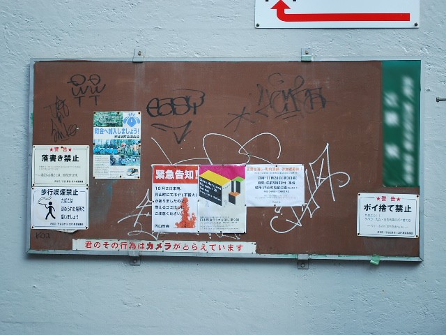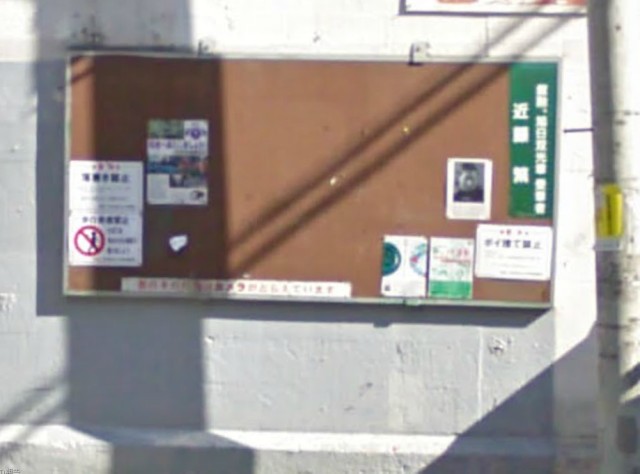 それに、掲示板の下部にある、 細長い帯になっている文字、 これもなにが書いてあるのかよくわからないけど 最後の文字が 「ます」 になっています。