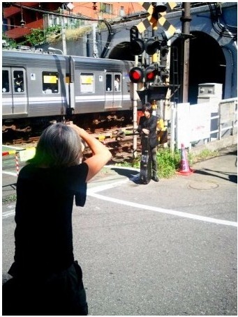 ギターケース(入ってるのかどうかは知らないですが)持ってるし、 さっきの踏切の写真と雰囲気も似ているし、 絶対近くにはちがいないはずです。