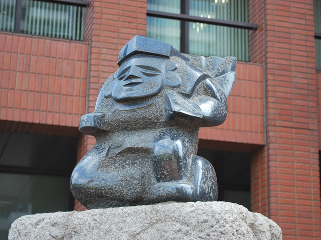 このビルの前庭には、とてもかわいいえべっさんの像がありました。