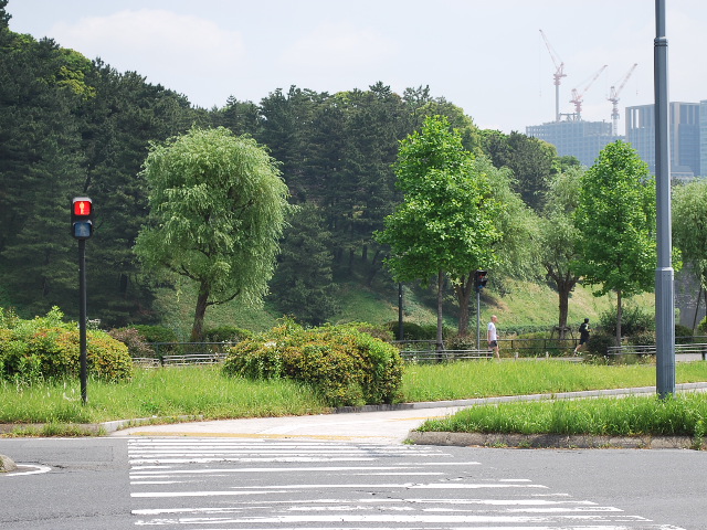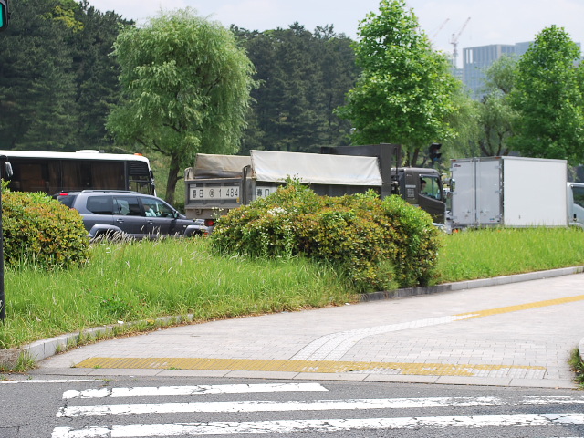 このシーンは、国会前交差点のところにある、 中央分離帯みたいなところです。