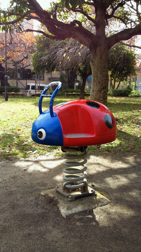 そのブログは、公園のことを書いたブログでもなんでもなく、 たまたまその人が、 だだっぴろい、寂しい公園のまんなかに ぽつん、と佇むてんとう虫の遊具に なぜか心ひかれて 都会の一風景としてあげられているものでした。