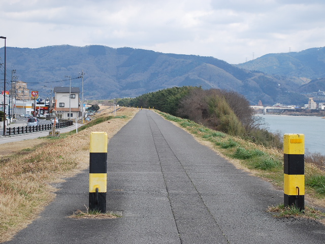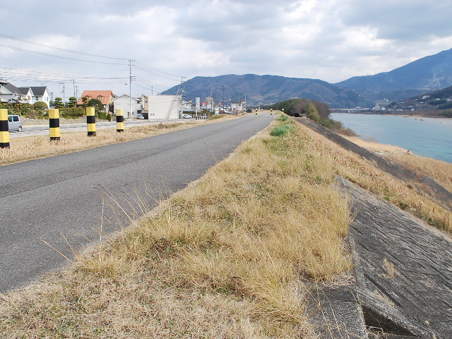 そして、現地。 風の強い日で しかもかなり寒かったのですが、 吹きっさらしの土手は、なおのこと。 びゅーびゅー風に吹かれながら、 場所の確認。 ここだ。