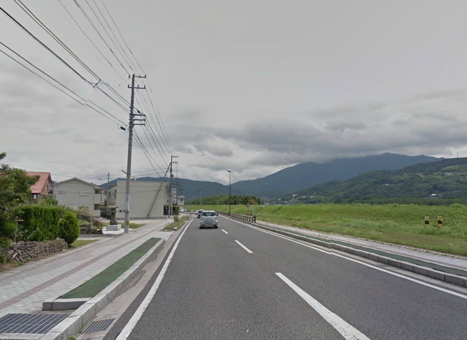 でも、すぐ横に川が流れていて メンバーの足元に堤防っぽいものがうつってるところを見ると、 これは、ストリートビューの道ではないようです。