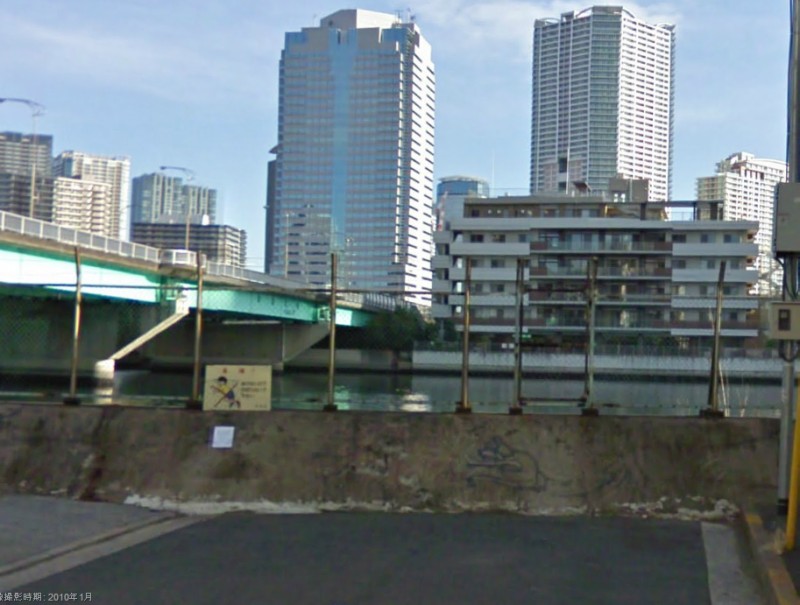 わたしもどこだかさっぱりわからなかったのですが、 後ろに写っている橋の外灯に特徴があったので それを頼りに とりあえず 隅田川の橋をいろいろと探してみました。