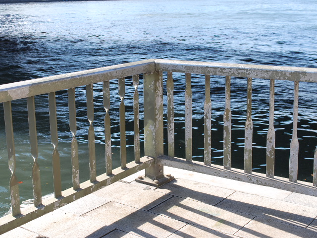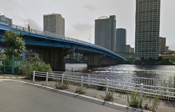 これは、勝鬨橋近くの、 てすりがコーナーになっているあたりです。 そういう場所は、ここしか見当たりませんでしたので わりとすぐにわかりました。
