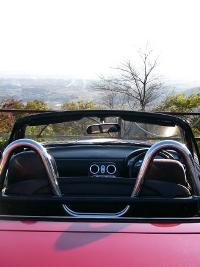 次にオープンにした際にスクリーンの収納に一切の無理をさせないこと。シー トバックの平らな面にバーを下ろすタイプのファッションバーもあるんだが、 このタイプではスクリーンの収納部へバーを下ろすことになるので、オープン 時にスクリーンに負荷をかける。剛性UPのためのロールバーならともかく、 ただのお洒落のために『正常な』オープン状態スタイルを崩すことになる製品 には我慢ならない。 さらにハードトップ装着にもなんら障害を与えないことも併記しておくか。 とにかく付けるならこれしかないのだよ。