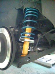 ファーベルクキットなんて格好よさげな名前がついてるが、要はちょいダウン 仕様な足回りキットだ。 ただ、よく小僧が陥り易い『バネだけとっかえて乗り心地最悪』みたいな状態 を避けるためだろう、ダンパーとセットになって売ってる訳だな。 あ、車高調じゃないよ。 資金もないし、正直車高イジってセッティングを出す作業を嬉々とやる余裕も なくなったんで、そこは今回スッパリと捨てた。(笑)