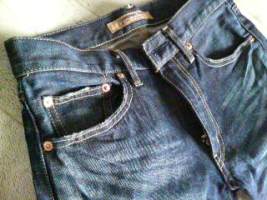 股上は冒険しない、ちょい浅め。 安いけど生地はシッカリしてるし、ゴワゴワしてて良い感じ。 適度なダメージ仕様が泣かすね。 今ってこうなってんの? 自分でタワシで擦ったり、軽石で擦り切ったりしないんだぁ。 こういうとこも『お手軽』か。