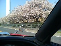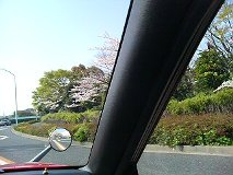 Aピラーに遮られている上に、桜はホンの申し訳ない程度にしか写ってないけ れど、すごく春っぽい風景が撮れた1枚。