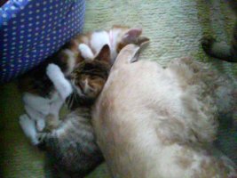 巷では黄金週間ってことで、夜叉が飼い猫を連れて帰ってきた。 我が家5匹+夜叉猫4匹+オマケ3匹。ん?オマケ?? 猫だけで12匹也。