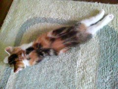 今日の写真だとミルクの毛色が分かるかな。 お腹の辺りで三毛がアメショーのようにタビー柄に巻いてる。 このままハッキリした模様で大人になるまで育ってくれれば、これはおもろい 毛色になる。 将来が楽しみだね。