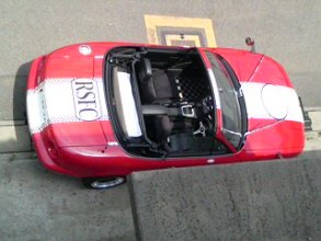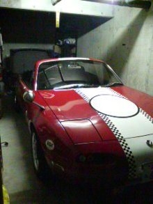 写真は作業待ちの暁さん。 あんま見たことないっしょ、真上からのクルマの画。 ロードスターってのは上から見てもグラマラスだぁーね。