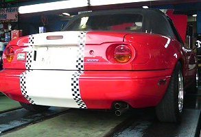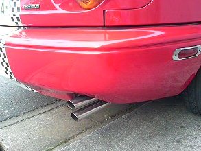 てなことで、鉄管音の出口をステンレス管に付け替えて貰った。 ついでに横2本出しだったのを憧れの縦2本出しに変更して貰った。 縦デュアルはZ432だよ。にひひ。 まーね、ロドスタであるからして、出口の太さは鉄管の時と同じ細さだけどね。