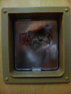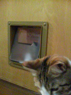 という訳で、今しがた部屋から廊下へ出る扉にペットドアを付けてみた。