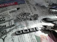 う〜む、見るも無残だ。 特殊でも良い道具も持ち合わせていないので、模型用の道具でバキバキと。 エンブレムは色んな作りの物があって、加工し易いの・し難いの色々だけれど、 今回のは、残す部分の際が狭かったり凹凸で刃物が滑ったりで面倒だったかな。
