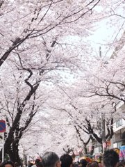 並木に入るとこんな↓感じ。地には人の群れ、天には桜の群れ。 その群れが延々と続いてる。