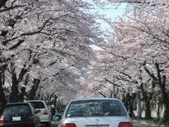 出迎えてくれる桜並木が見えてきた。ワクワク。