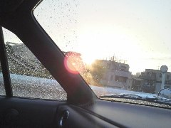 激しい雨の中、左手から強烈な夕日が襲ってくるのだ。 晴れた日の夕焼けほどに目の眩む夕日。 土砂降りなのに夕焼け。