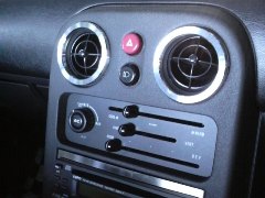 分かり難いかもしれないので一応説明すると、エアコン操作部のところを四角 にしました。 Rは出し難いので純正パネルをもうひとつ用意して右側の四角部を切り取って、 左側の丸部へ移植してあります。 なので、1001とかの四角さよりもチープな感じが漂ってて純正っぽい、と俺は 思ってます。