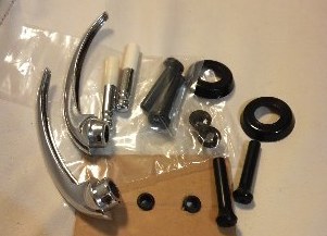 カラーの形は横から見て凸形。アルミ製。 上に跳び出てる部分は下まで突き通るアルミパイプでこの部分がノブに刺さる。 下の部分はアルミ削り出しのリングでこの部分がノブのカラーになる。