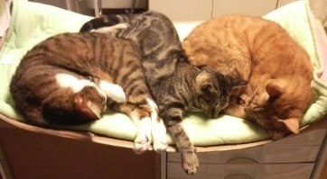 ニューフェイス、月輪丸は我が部屋の先輩猫らに上手く溶け込んでる様子。 今んとこはね。