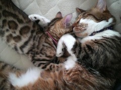 そんな手のかかるチビ助、璃乃丸(リノ)。 月輪丸のほかにも面倒見て貰えるくらいの仲になった先住猫が増えた。