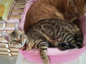 キリッとした美人さんですが、まだまだ子供です。 体力は有り余ってるようで、最近じゃ先輩猫達は付き合いきれない感じ。 かなりアクティブ……というか豪快な感じ。(笑) 同じく体力のある若い月輪丸だけが、長い時間一緒になって遊んでくれている。