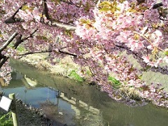 マッドシティの中心都市にある小さな川沿いに植えられた河津桜。 マッドシティにあって河津とは如何に?と問うは無粋ぞ。