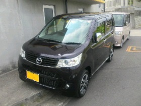 マツダのフレア・カスタムスタイルって軽自動車。 スズキのワゴンRスティングレィのマツダ版です。