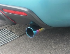 マフラーカッターです。 チタンマフラーを買う資金はないですが、この製品だってチタン製。 青が欲しいだけなので充分です(笑)。 SFCという処の「チタンテールアウター」と言います。 今はマフラーカッターとは言わないのでしょうか?(謎)